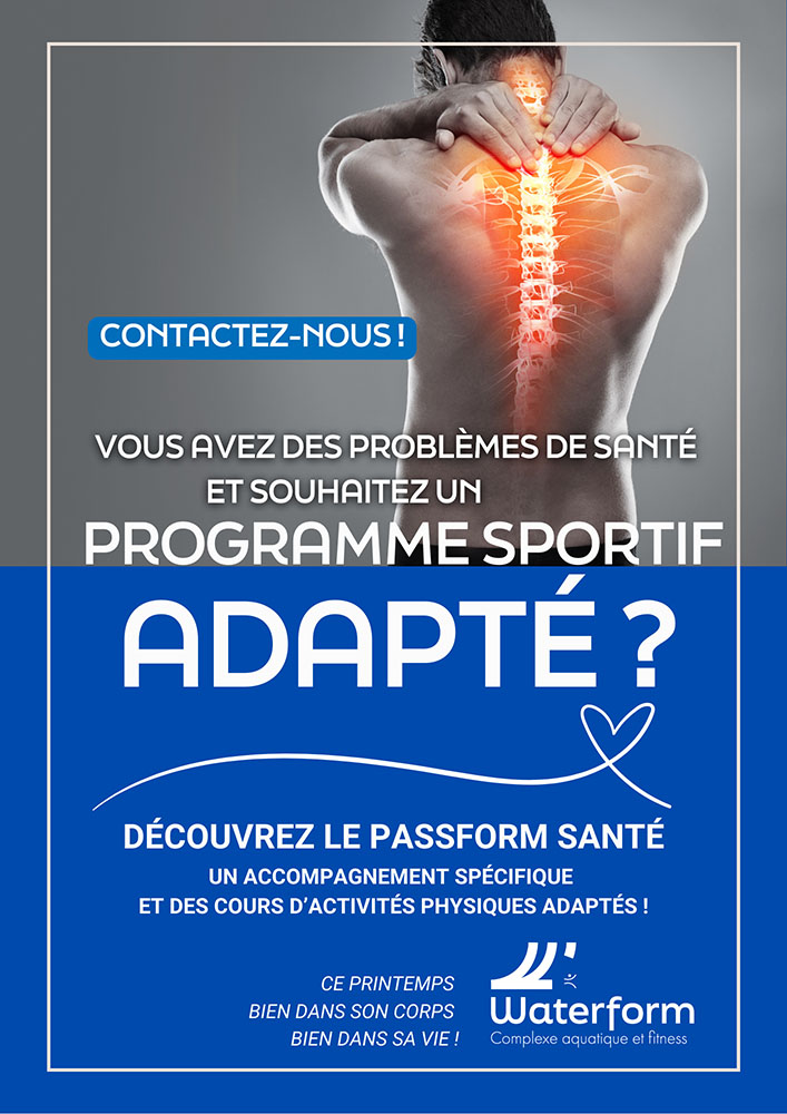 Le Sport Santé est une approche globale visant à améliorer la Santé et le Bien-être à travers l’exercice physique adapté pour tous, selon ses besoins et sa condition physique. Waterform souhaite aller encore plus loin pour vous accompagner avec la mise en place de cours d’activités physiques adaptées.